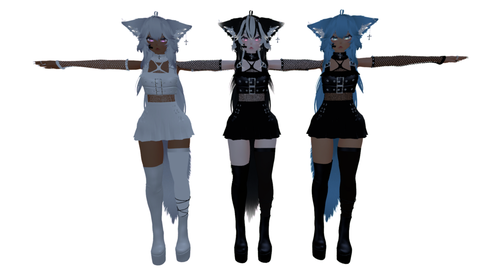 Hue Shift on - Hair (black, white, color), Ears, Tail, Eyes, white toggle for clothes